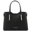 Meet the Olimpia Small Size bag, a petite Leather Tote exuding timeless elegance. Crafted from box smooth leather, it features a rigid structure, two compartments, a zip pocket, and two open pockets. Adorned with a gold hot-stamped Tuscany Leather logo, this tote is both chic and functional. The detachable, adjustable shoulder strap, golden hardware, and secure zip closure make it a stylish companion for any occasion. Experience Italian craftsmanship with the Olimpia Leather Tote, where sophistication meets practicality.